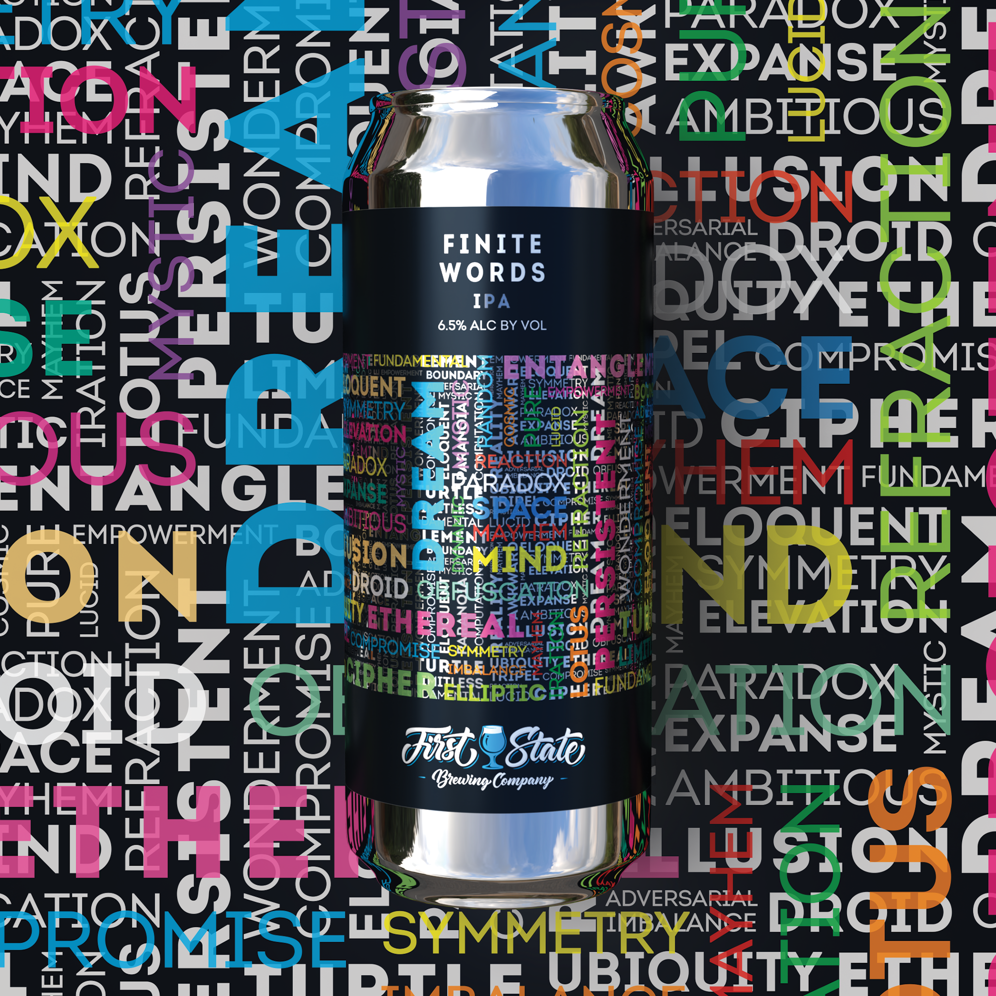 There are a finite number of words in the English language. Do original thoughts exist anymore? Are there any words not said? In a world of postmodern brewery names saturated with obscure words, pop culture references, & hop puns it’s hard to cut through the noise without stepping on some toes. For your approval, we present Finite Words, an IPA featuring Mosaic, Idaho 7, & Centennial hops. Thought-provoking notes of pine, tangerine, & grapefruit glint against a firm & balancing bitterness. And now for a sentence never written before. A micro shrimp flying a helicopter to Applebee’s® and ordering bees because they were all out of apples…well we guess it was never written until just then.